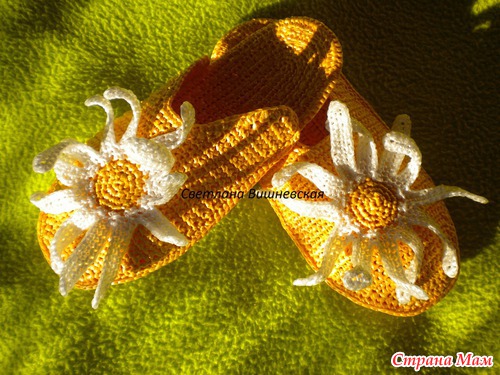 МК по вязанию подобных шлёпок можно найти в моём дневнике, вот ссылка https://www.stranamam.ru/post/13861973/