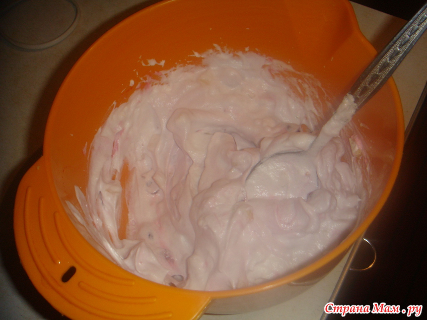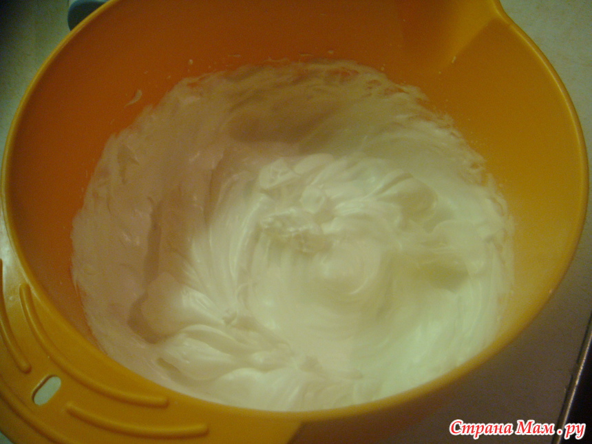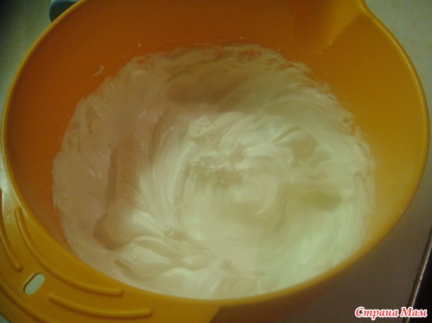 Белки с щепоткой соли взбиваем в крутую пену, не выключая миксер добавляем сахар и взбиваем до полного растворения сахара.