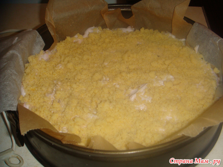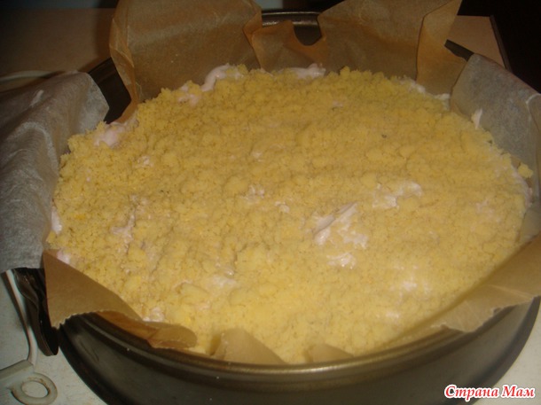 Засыпаем оставшейся крошкой. Выпекаем в духовке, разогретой до 180*С до румяной корочки. у меня ушло на это 40 минут.