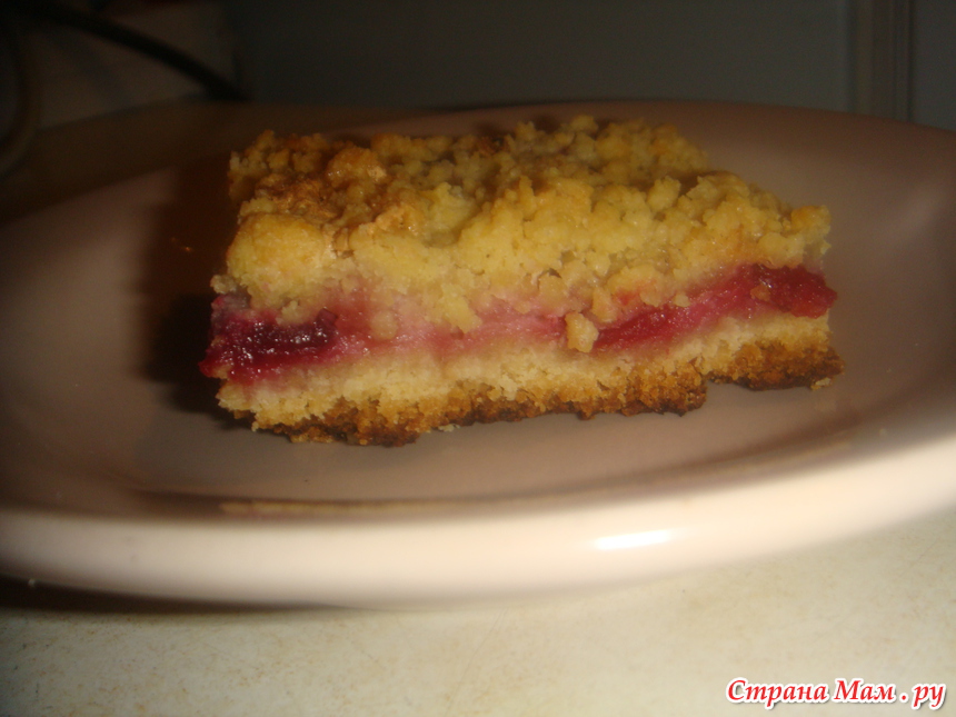 Очень вкусный пирог! Тесто нежное - нежное, рассыпчатое, в меру сладкое, прослойка с легкой кислинкой. Как то удивилась, что нет разрыхлителя в тесте, в следующий раз попробую с ним испечь и обязательно напишу, что получится у меня.