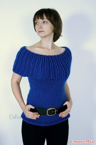 Синяя кофта из толстой пряжи.