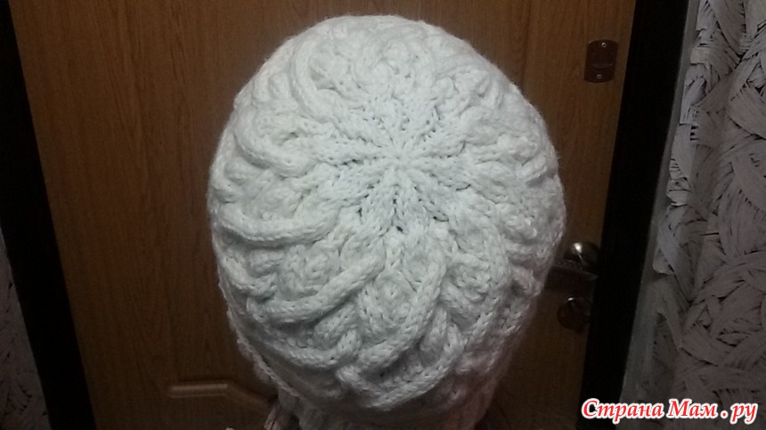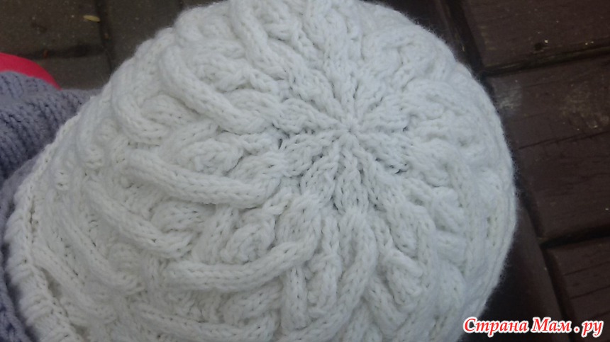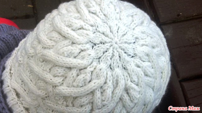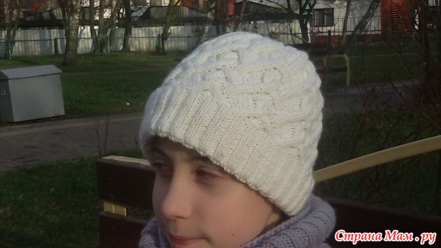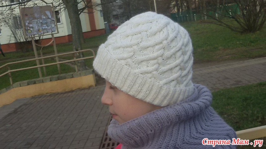 Вязалось в две нити, спицы № 3 с отворотом. Теперь понимаю, что отворот в шапке лишний, но дочь просила с ним.