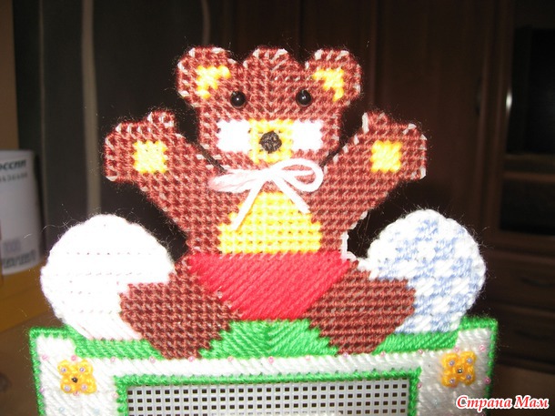 Вот вышилась такая рамочка для фото моей внученьки, вся рамочка вышита бисером, только почему то фото мутное получается и не смогла передать ее красоты, да еще и фото боком не хотят переворачиваться. Это китайский набор размер рамки 18х22, высота рамки вместе с мишкой 33см, сама добавила на рамку бисер