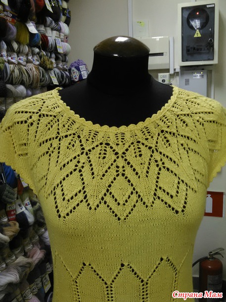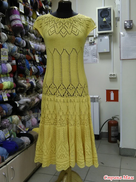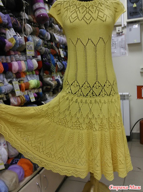 Хочу показать платьице. Связано по мотивам платья с Осинки "Разлетелись крылья лебедя". Но там оно меня не впечатлило, пока не встретился вот такой же солнечный вариант Аллы Жегуловой. В него то я и влюбилась с первого взгляда.
