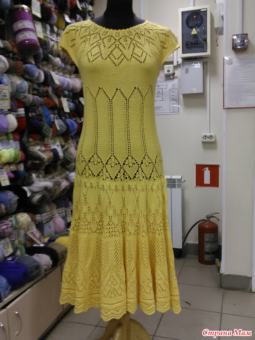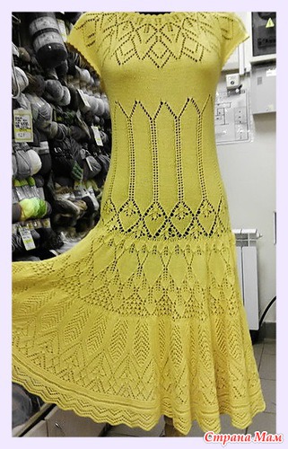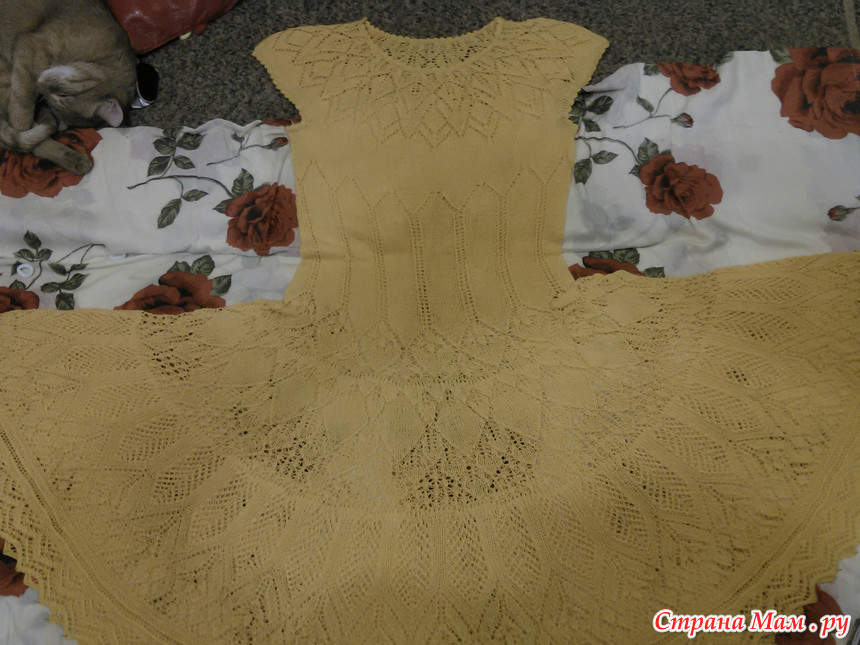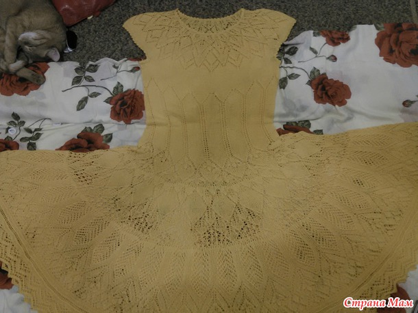 Хочу показать платьице. Связано по мотивам платья с Осинки "Разлетелись крылья лебедя". Но там оно меня не впечатлило, пока не встретился вот такой же солнечный вариант Аллы Жегуловой. В него то я и влюбилась с первого взгляда.