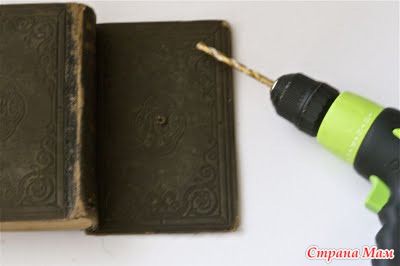 2. Дрелью сверлим отверстие в центре обложки.