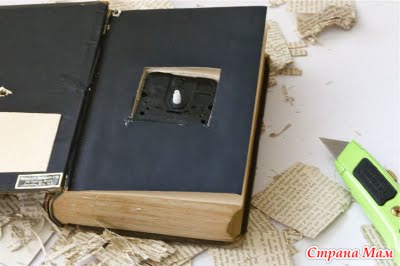 5. После стенки механизма промазываем клеем ПВА, как бы скрепляя с книгой, с обложкой.