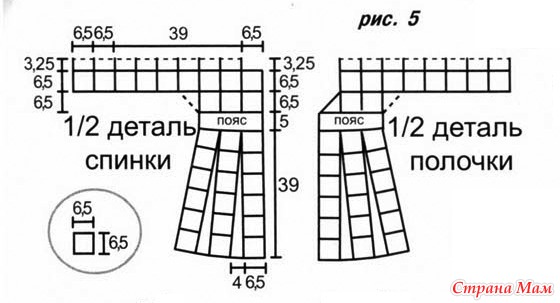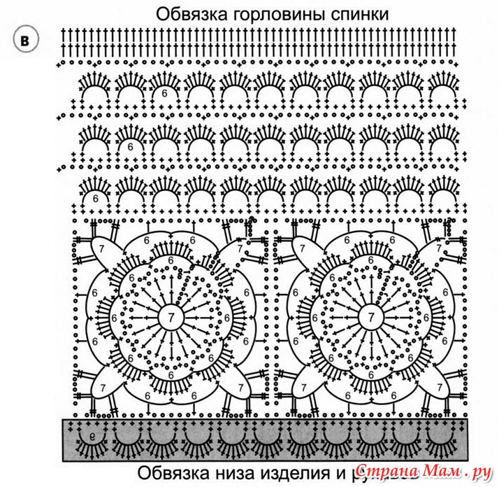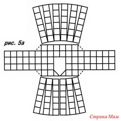 Сначала соберите верхнюю единую деталь полочек, спинки и рукавов. Расположение мотивов смотрите на рисунке 5а.