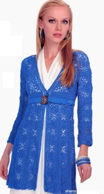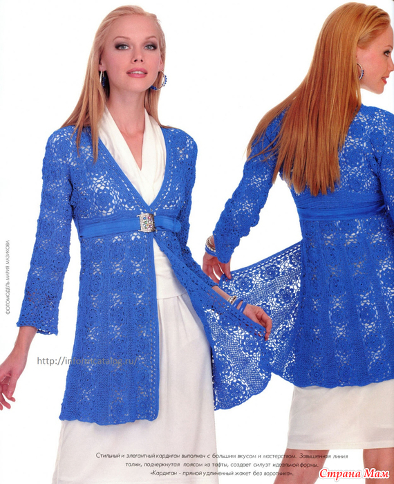 Потребуется : 500 г пряжи (100% вискоза, 500 м/100 г) синего цвета; атлас синего цвета; клеевая прокладка; декоративная пряжка; кнопка; крючок № 1,2;