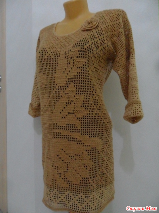 Дорогие мои рукодельницы, пару дней назад связалась у меня еще и туника.. филейная..( моя любовь) цвет очень интересный, вкусный.. цвет кофе.. конечно схемка эта гуляет давно.. но попросили именно этот рисунок..