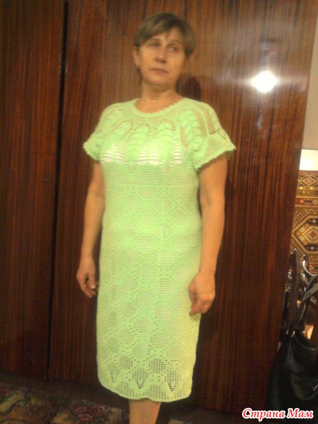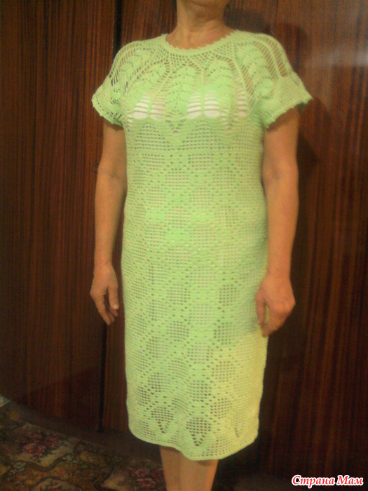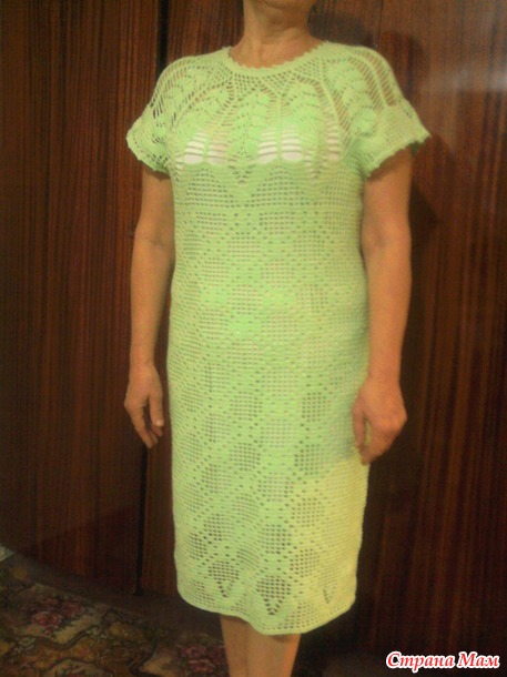 Платье связано с верху. Ажурная кокетка, а низ филейка.