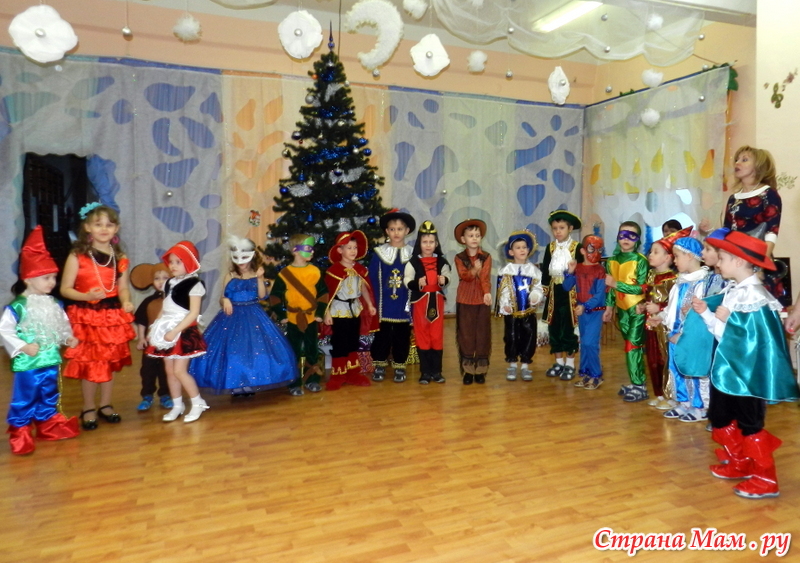 в нашем дет саду у всех одинаковые костюмы,например девочки- снежинки,мальчики - зайчики. И так из года в год по накатаному сценарию