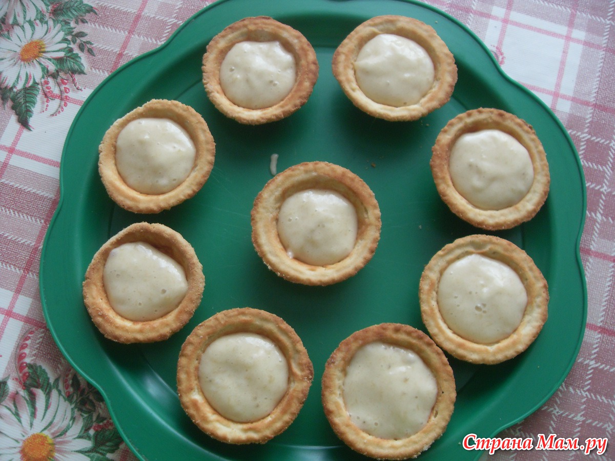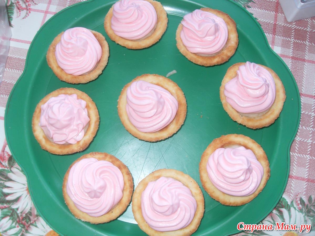 песочные корзиночки с банановым пюре и взбитыми сливками.