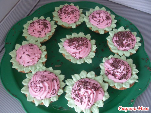 Сверху украшаем взбитыми сливками с помощью кондит.мешка с насадками