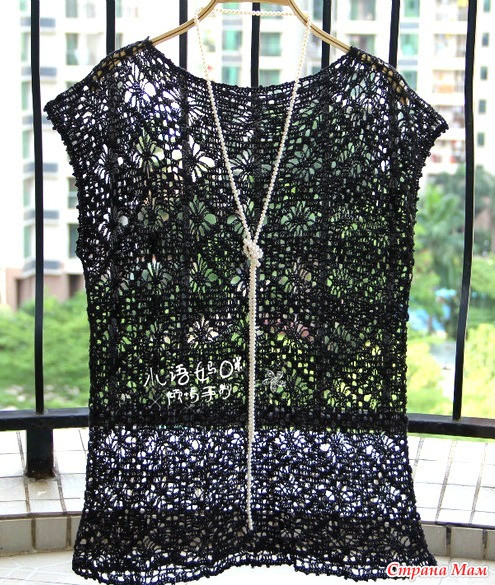 . Черная ажурная туника узором паучки.