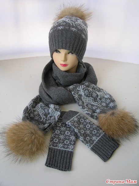 Весь комплект связан с Итальянского мериноса, помпоны натуральный енот..