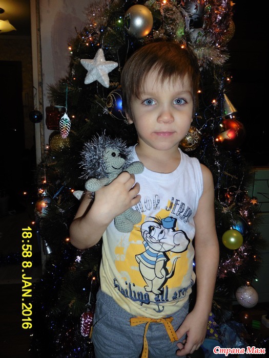 Ёжик Трям и обезьянка - символ года. Младший в восторге от игрушек.