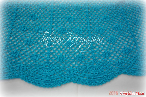На схеме в основном узоре цепочка из 5 в. п., но так как я вязала крючком № 3, я делала цепочку из 6 в. п. К концу вязки набирала уже по 7 в. п., чтоб чуточку расклешить.