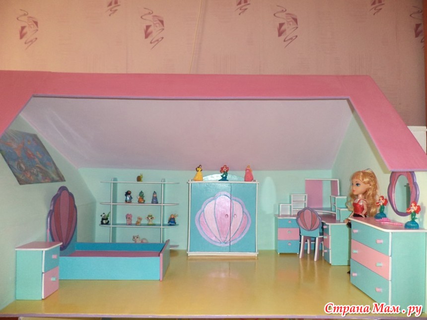 Это комната в мансарде нашего кукольного домика. Здесь живёт наша старшая кукольная дочка.