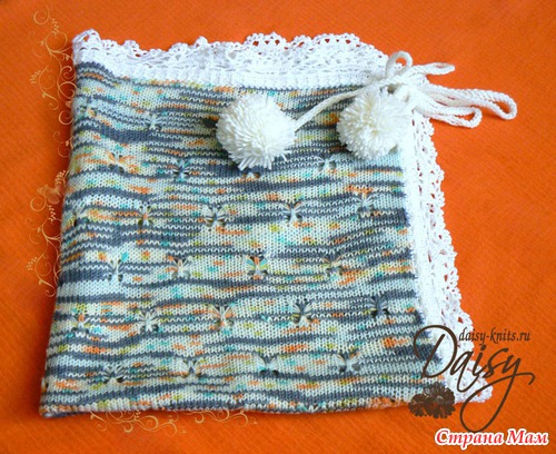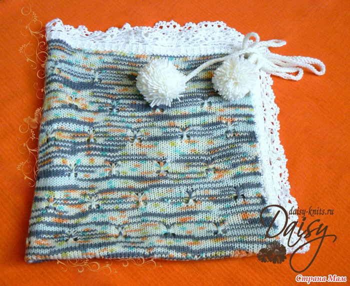 Небольшой плед для коляски, связанный узором, Бабочки из специальной