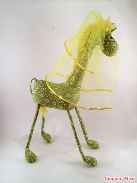 Подруга захотела купить своей знакомой в подарок на свадьбу жирафика в анютиных глазках, а её муж решил, что и зелёненький то же должен быть подарен, его пришлось сшить срочно, и в качестве бонуса- сюрприза я решила немного помочь этой паре соответствовать событию