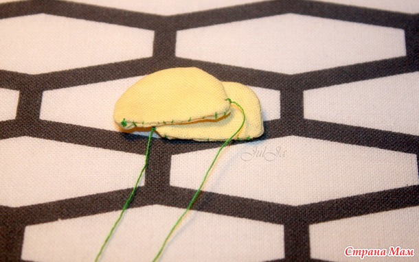 - Зашиваем ухо потайным швом. Закрепляем боковой шов. Нитку не обрезаем. Ухо проглаживаем.