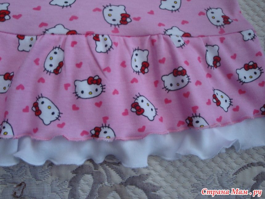 Кокетку украсила ажурной резинкой (обычно если пытаешься на трикотаже сделать отстрочку на простой машинке, то получается небольшая волна... а вот резиночка меня здесь и спасла...)