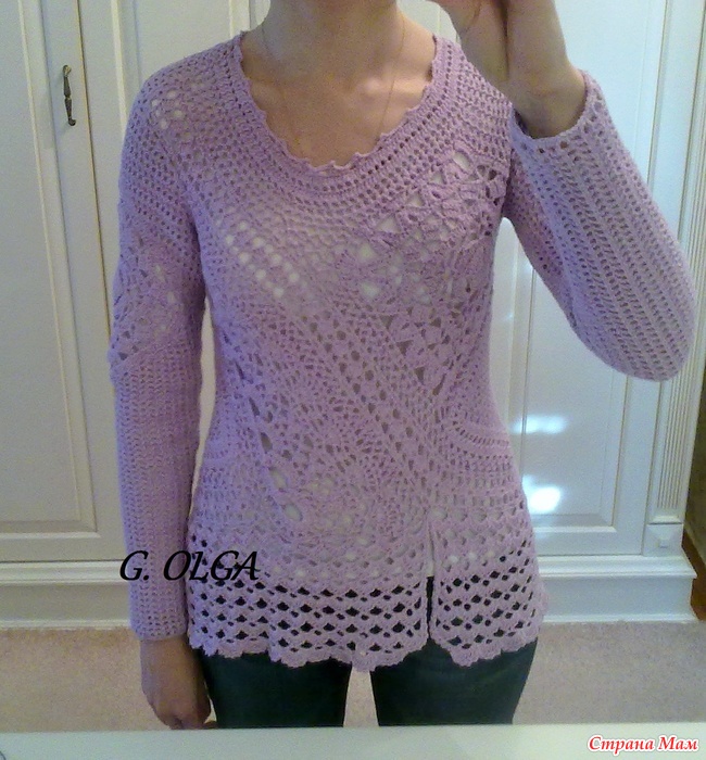 . Мечтая о весне, связала по картинке пуловер "Ангел Севера" от Антрополоджи. Немного изменила модель, добавила свои мотивы и узоры. Пряжа ЯрнАрт Саммер 70% хлопок 30% вискоза. 100г. 350м. Расход 390г. Крючки 5 и 4.Это оригинал.