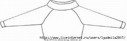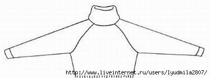 2. Свитер-реглан с воротником гольф можно также связать с одинаковыми спинкой и передом, так как высокий гольф можно просто отогнуть спереди сильнее. Петли для воротника просто следует набрать свободно и провязать резинкой или другим выбранным узором 15-20 см, затем приступить к вывязыванию кокетки точно также, как это делается при вязании свитера с воротником лодочкой. С воротником гольф очень часто вяжут детские модели, а одинаковые спинка и перед дают практичным мамам еще одну дополнительную возможность: свитер можно носить любой стороной, поэтому локти протираются не так быстро.
