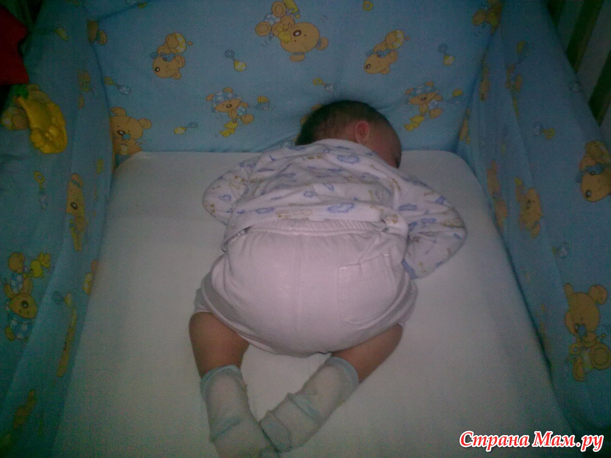 Мой сынок ночью когда спит всегда упирается головой об бортик, и сколько раз буду его переворачивать столько раз он будет возвращается в любимую позу. При чем днем спит нормально на бочку. А Ваши детки как спят?