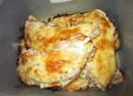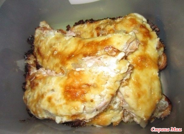 5. Сыр натереть на крупной тёрке. На кусок рыбы выложить лук -сметану с майонезом - сыр и в духовку. Минут через 15-20, когда сыр запечётся до коричневой корочки - готово!