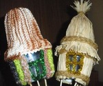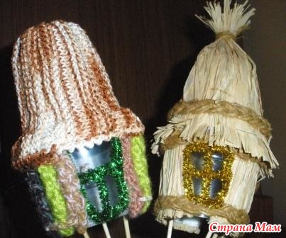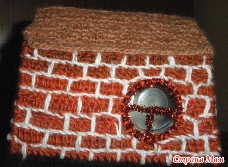 Захотелось мне для пальчикового театра "Три поросёнка" сделать декорации, а именно, домики которые по сказке делали поросята, придумала сразу, а вот воплотить получилось не так быстро! С первым соломенным для Ниф-Нифа, сразу пришло решение, делать из сезаля. Второй из прутьев для Нуф-Нуфа, пришлось голову поломать, но придумала, связала прутики и крышу, типа из брёвен, ну мне понравился результат, а вот с третьим из кирпичей для Наф-Нафа пришлось... думать, но и с этой задачей я справилась. За основу, в первых двух домах, я брала пустые стаканчики, склеивала встык, а дно у одного отрезала, да и третий был не так сложно придумать, пустая коробка от конфет (трюфели), пришлась очень кстати! Дальше придумала как связать крышу, бока, окно (отрезанное дно от одного стаканчика). Была под рукой разноцветная проволока, как раз три цвета и её в дело. Кирпичный пришлось по деталям вначале сшить, а потом одеть на коробку, как основу и приклеивала моментом. Нитки пошли разные и по качеству и по фактуре, благо их в доме много.