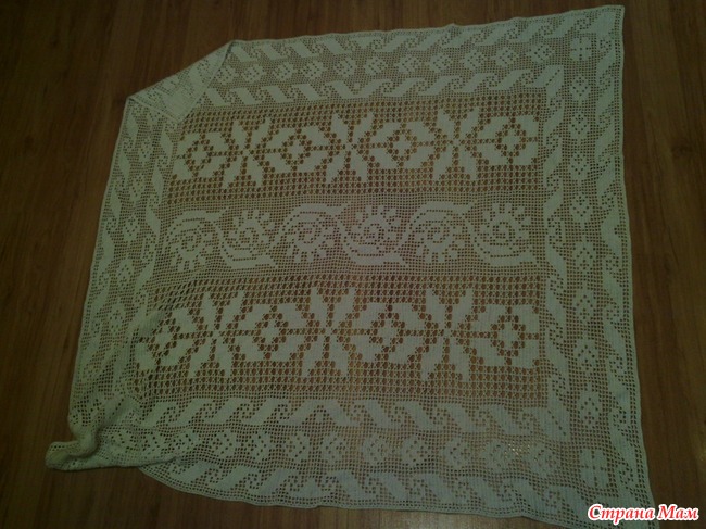 Хочу показать вам покрывальце своей малышки. Вязала я его из Семеновской "Тамары" ушло 5 мотков, ниточка мне понравилась и в работе и в нОске. Связан он был еще летом, поэтому номер крючка не скажу, не помню))))) Схема взята из итальянского журнала.
