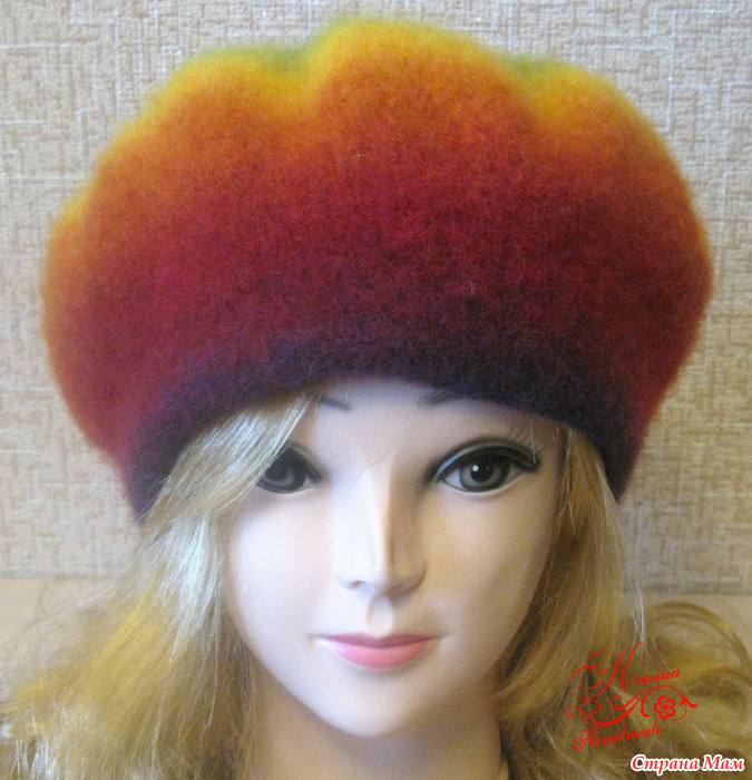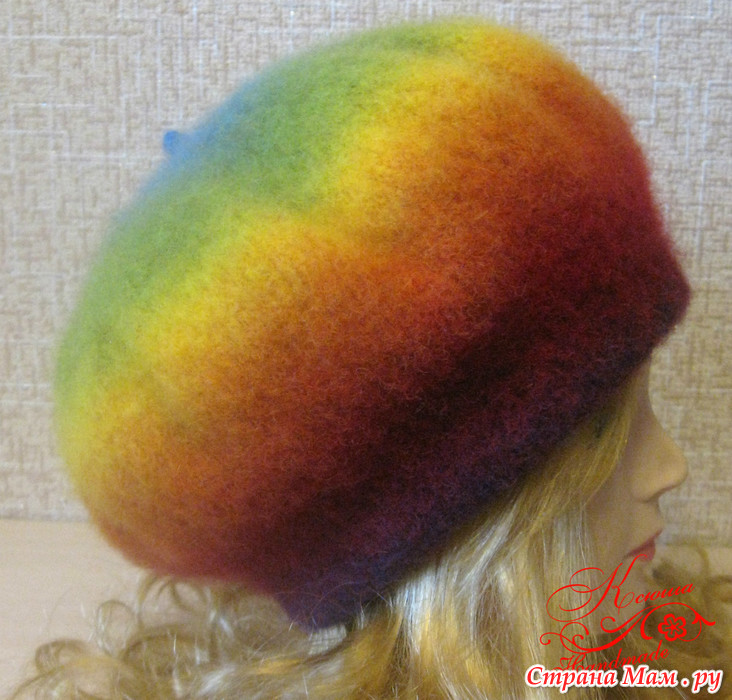 Единственное отступление от описания-ободок вязала на 5 рядов больше( хотела подогнуть и привалять, но он решил по-другому и не привалялся))))