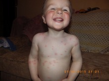 Девочки, добрый день! Беспокоят меня высыпания на коже. Ребенку почти 3 года. Высыпания в виде укусов комара. Единичные покраснения, прыщики. И по 2-3 штуки на растоянии до 1 см друг от друга. То на ногах, то на руках, то на бедре, то на шее. Намажу на ночь, к утру краснота проходит почти, в другом месте чешется. Побывали у педиатра, она предположила, что ветрянка. Я ей и говорю, что это уже с неделю по чуть-чуть, тогда нет, говорит, это не ветрянка. Помажьте фенистилом и капли подавайте фенистил и наблюдайте.Наблюдаю уже неделю..