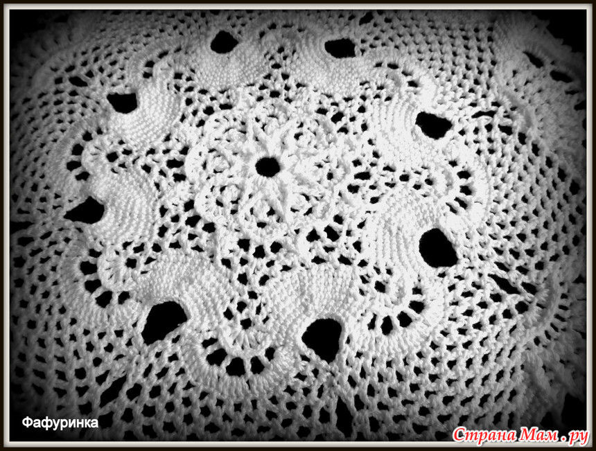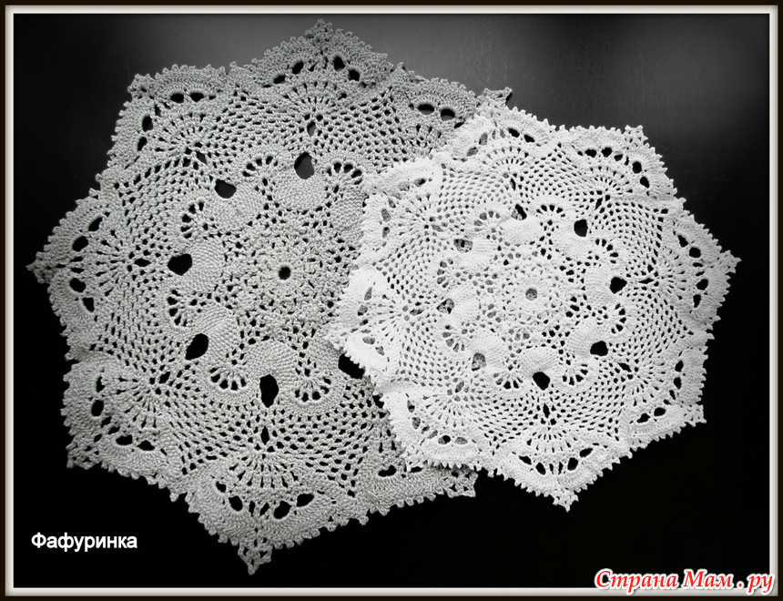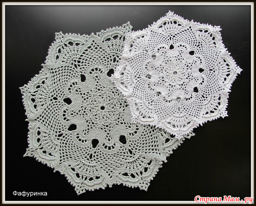 Когда я только-только набродила на эту рукодельную копилочку, попался мне на глаза пост https://www.stranamam.ru/post/10120015/ с салфеткой №5 из Ананасовой Галереи Патрисии Кристофферсен. И, не смотря на то, что салфетки мне ни к чему, запала она мне в душу. В роддоме делать было нечего, а слушать разговоры тамошние - здоровью вредить, потому как раз там и связала за пару дней белую салфеточку. Признаюсь честно, по описаниям вязать было сильно непривычно, схемы как-то роднее. Но мне результат так понравился, да и процесс (интересно, да и быстро), что уже после рождения дочки связала "из того, что было" серую салфетку.