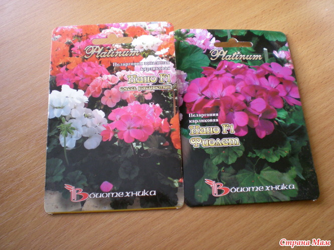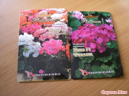 В прошлом году сестра подарила мне карликовую пеларгонию. Мне очень понравилась эта персиковая малютка (высота кустика 17 см) и я решила завести маленькую коллекцию разноцветных гераней. Начала искать семена, поиск мой увенчался успехом. Купила 2 сорта!