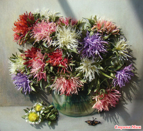 РАБОТА ВЫШИТА ЛЕНТАМИ "MAJESTIK" 1-13 мм.