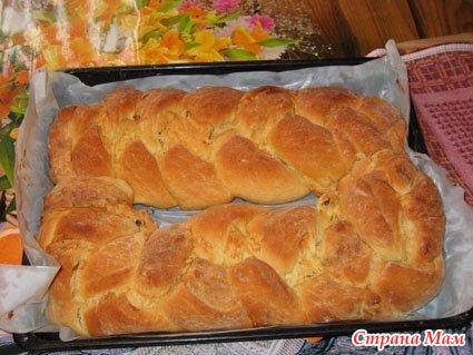Разогреть духовку до 180-190 град. Последнее яйцо разболтать с ложкой молока, смазать косу, посыпать маком или кунжутом.