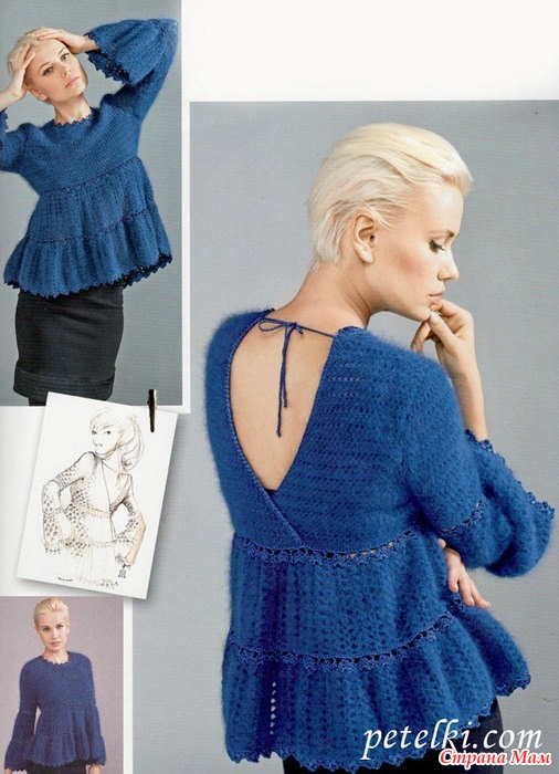 . К пуловеру есть описание вот здесь: http://petelki.com/vjazanie-dlja-zhenwin/vjazanie-krjuchkom/pulovery/7879-vjazanyj-krjuchkom-pulover-iz-angory.html