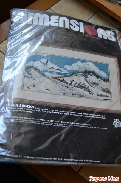 В наборе ткань с напечатанным фоном (36*46 см), размер крестика соответствует 14 ct, хлопковые мулине (количество написать не могу, набор не вскрывала) и игла.