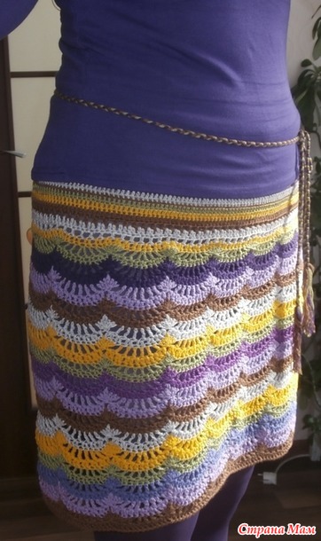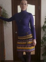 Я ее слепила из того, что было, а потом, что было - то и полюбила. Юбка связана из всевозможных остатков, сиреневых настолько мало было, что на пару рядов только и хватало. Нежданно-негаданно стала одной из любимых вещей.