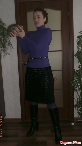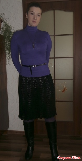 Черная юбочка связана давно, не помню какие ниточки, хлопок, Турция. Носится с подкладом, но на фото сняла, так как не видно было совсем рисунок, была просто черная юбка непонятного происхождения...