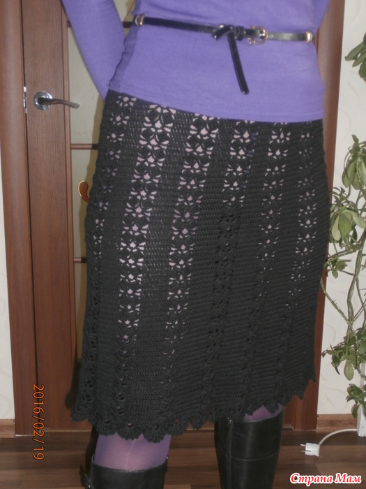 Черная юбочка связана давно, не помню какие ниточки, хлопок, Турция. Носится с подкладом, но на фото сняла, так как не видно было совсем рисунок, была просто черная юбка непонятного происхождения...