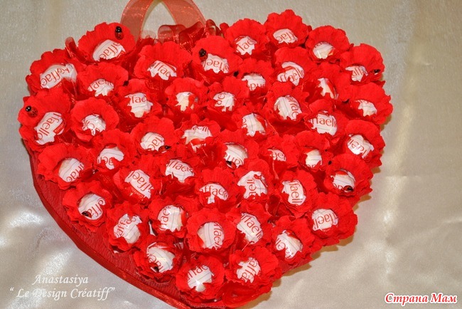 Сегодня у Мамули день рождения! И я решила сделать ей сладкий подарочек. Давно засматривалась на сердца из конфет и гофрированной бумаги, и вот как раз был повод) Получилось шикарное сердце ярко красного цвета. Делала первый раз, поэтому не все вышло идеально, но на мой взгляд очень не плохо)))