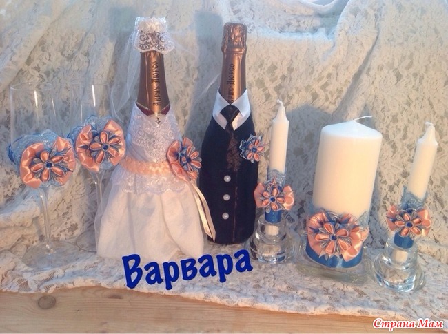 Это первый заказ от подруги, которая просила одно украшение на две бутылки.