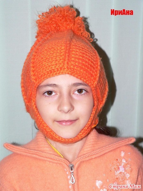 Рельефными столбиками связала шапочку племяшке. Пряжа из Троицка "Подмосковная" в две нити. Крючок №5. Сначала связала помпон с вытянутыми петельками, а уж потом пошло расширение на саму шапочку. В помпон можно и положить что-то, но и сам жёстко держит форму.