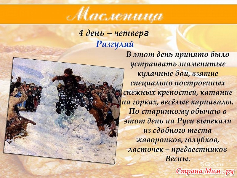 . Масленица. День четвертый, разгуляй - четверок, широкий.