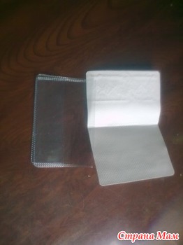 Здесь обложка вышитая с изнанки. Я использовала белую глянцевую самоклейку,которую купила в обойном отделе. Наклеела и теплым утюгом прогладила через ткань.