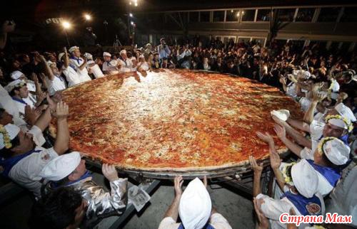 Итальянские повара приготовили пиццу весом в 24 кг и диаметром 5 метров.